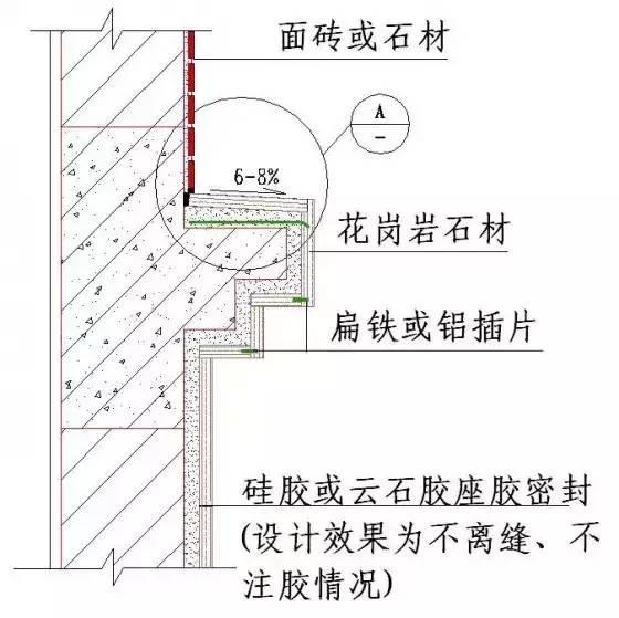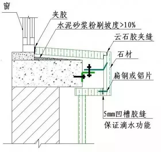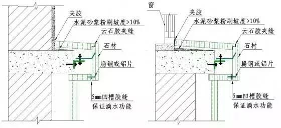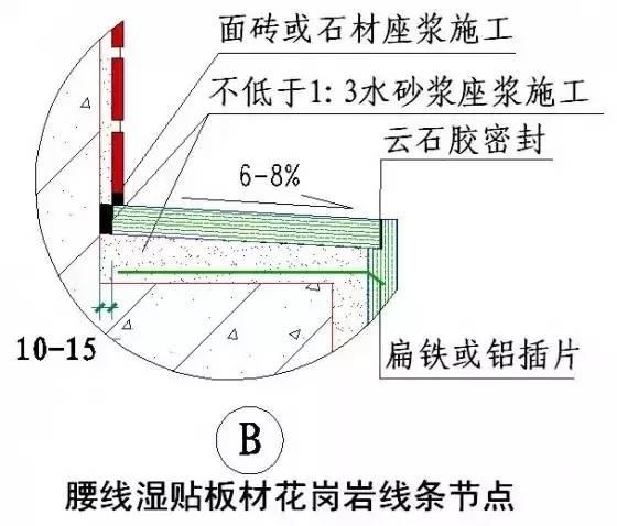 说明:室外花岗岩窗台及线脚基层水泥砂浆粉刷坡度大于10%。