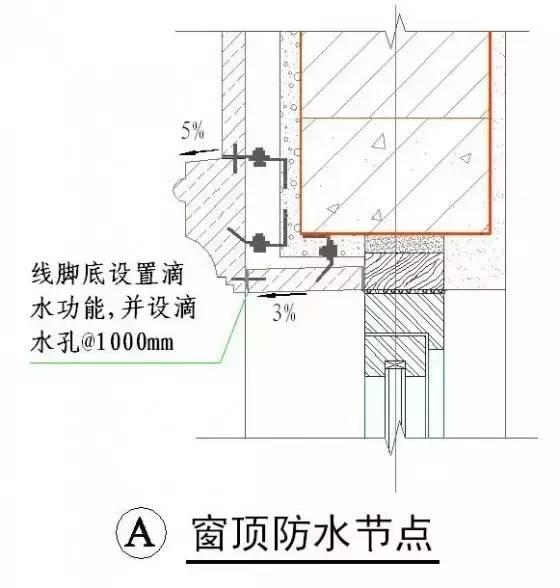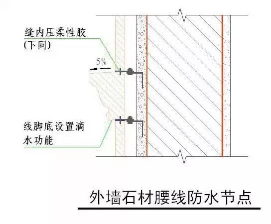 1.所有腰线必须保证上平面有坡度,下有滴水功能;