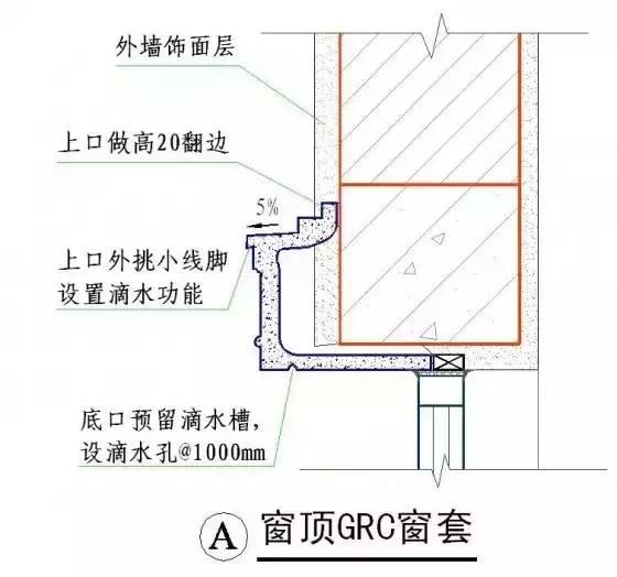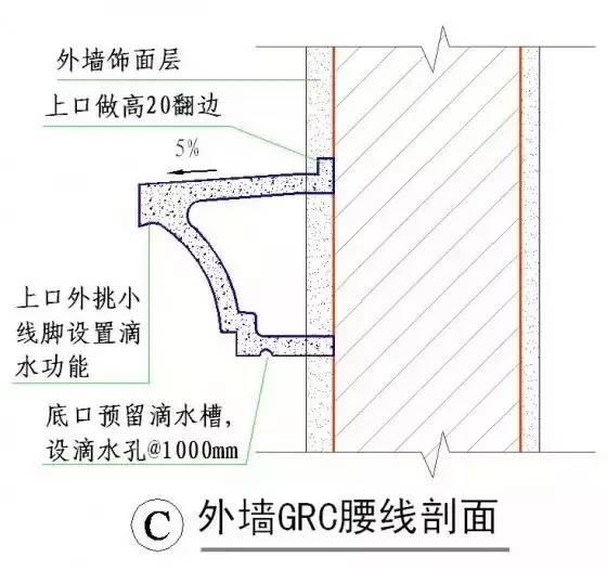 1.所有GRC装饰线必须保证上平面有坡度,下有滴水功能;