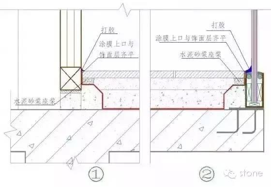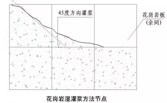 5.灌水泥砂浆时要求成45度方向灌实,所有腰线顶面板及压顶板严禁半干粉砂浆铺板,必须使用流动的水泥砂浆铺贴面板。