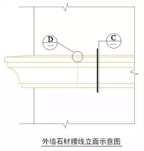 3.文化石饰面高度超过一层时,在二层圈梁部位增设一道钢筋砼支座线,如有饰面要求,可选用暗设方案施工。