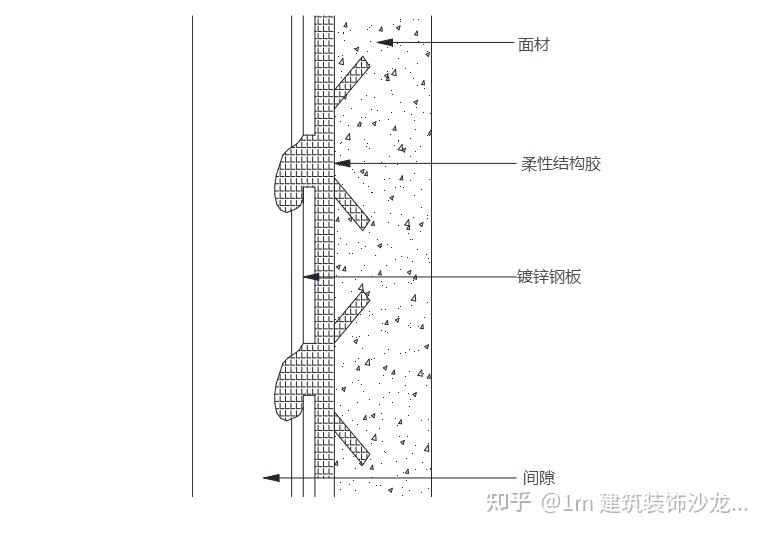 这种方式可以有效地避免两者连接处的开缝问题,并削弱石材饰面板对龙骨结构的反作用,很大程度上避免了石材局部的破坏。