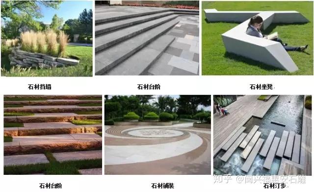 景观中常见天然石材有:花岗岩、大理石、砂岩、板岩等
