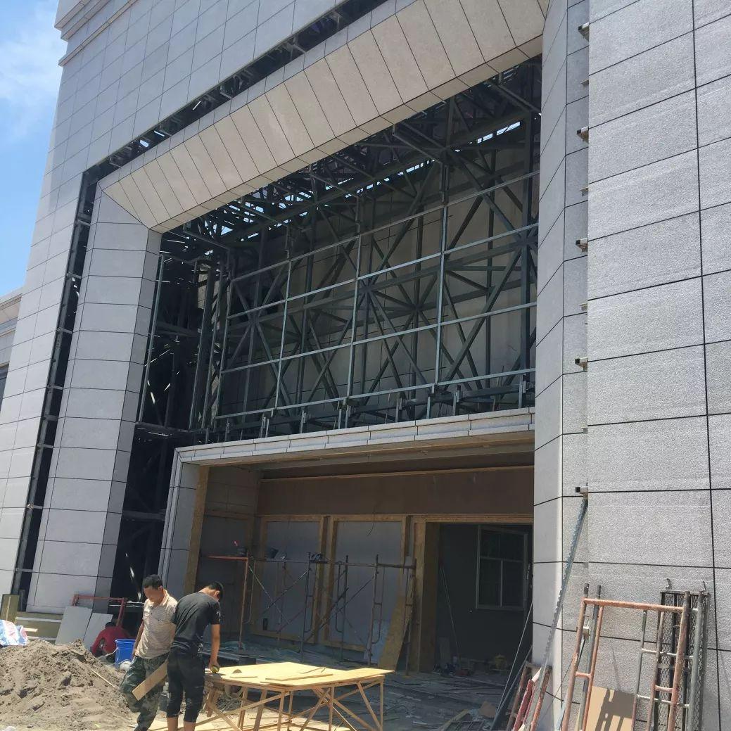 看完石材幕墙的节点手法和安装过程,最后我们尺度再拉大一些,来看看一些实际石材幕墙干挂时的场景,进一步加深对石材干挂做法的理解。