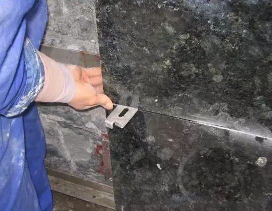 6、石材短槽必须机械开槽,保证槽缝宽度符合设计要求,严禁现场手提切割机开槽。