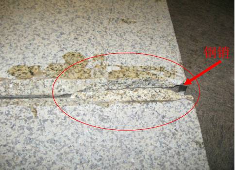 拼接板进行破坏性试验,拼接处胶未断裂,石材断开,加工厂所用粘接胶强度大于石材,拼接板安全可靠。