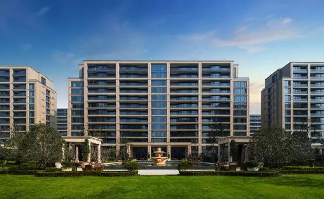 石材干挂外墙是蓝(绿)城非常精通的建筑外墙系列,蓝(绿)城通常采用的暖色系干挂石材让立面整体呈现出新古典主义的比例与线条,充满丰富的细节变化的美感,极具价值感。