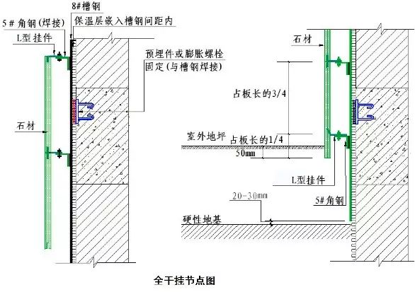 上面分享的是石材究竟是怎么挂上去的,下面继续为大家解读秘笈下半部——蓝(绿)城是如何控制石材干挂质量的。
