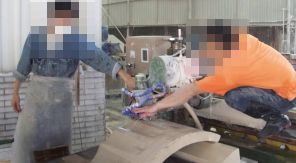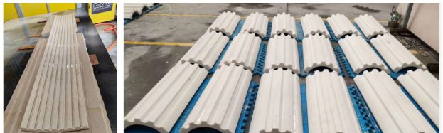 将加工好罗马槽的圆弧板从造型设备工作台上取下来,放置到产品周转架上。图8、图9开好罗马槽的圆弧板。
