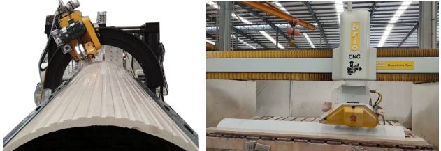 试加工合格后,可以批量加工。图6、图7为圆弧板罗马槽的两种加工方式。图6为圆弧板罗马槽开槽的专用设备,图7用电子桥切机开槽。