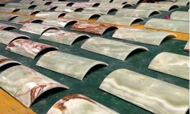 将打磨抛光好的罗马槽圆弧板按生产加工单上的排板图排板全面检验。