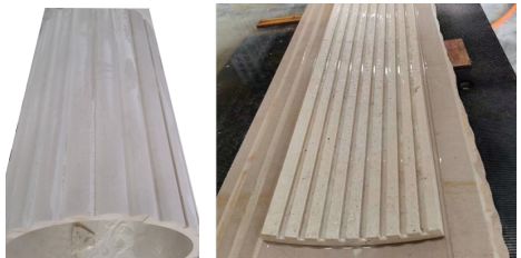 对一些软硬不一的石材打磨抛光罗马槽时不能用水磨片打磨,用砂纸包裹着木棒或石条打磨抛光罗马槽,这样打磨抛光出来的罗马槽不会产生波浪,打磨抛光的罗马槽效果更好。